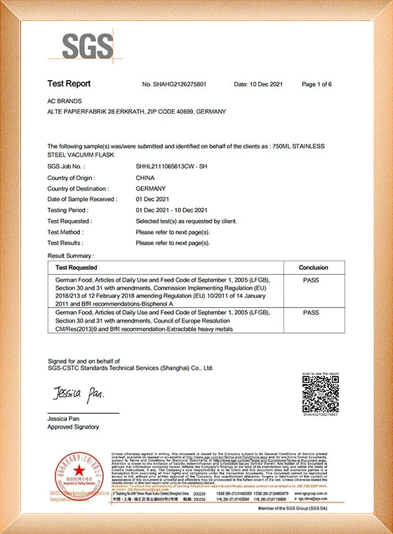 Kami mempunyai pasukan penyelidikan dan pembangunan bebas, dengan cawan termos keluli tahan karat yang dipatenkan bebas. Kilang itu telah lulus pemeriksaan dan pensijilan BSCI.