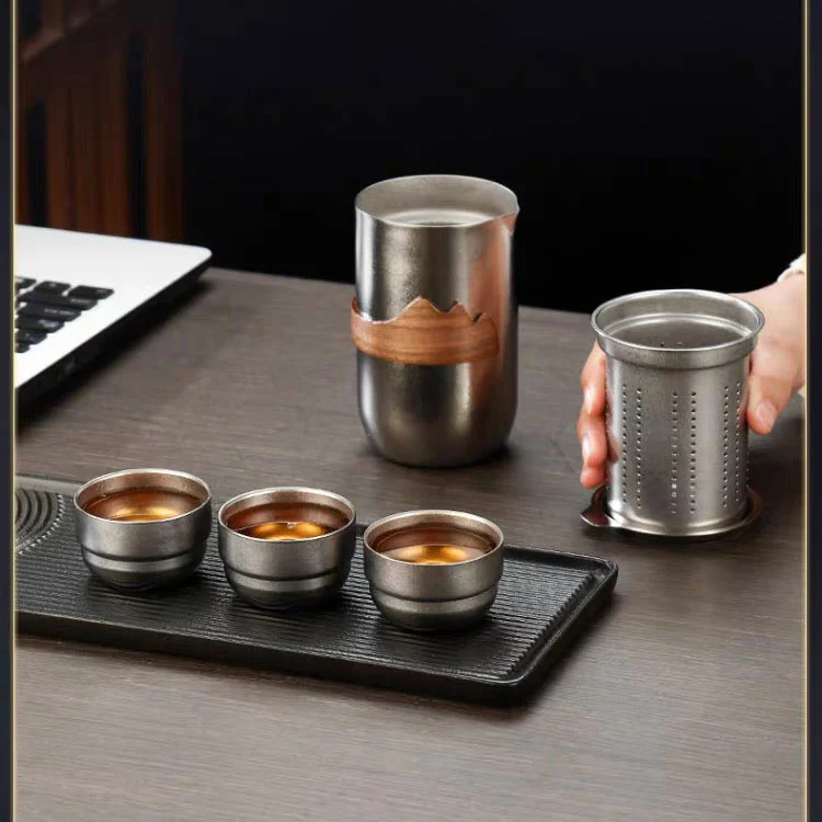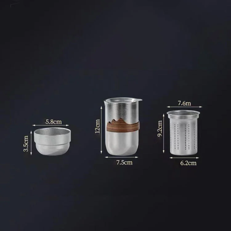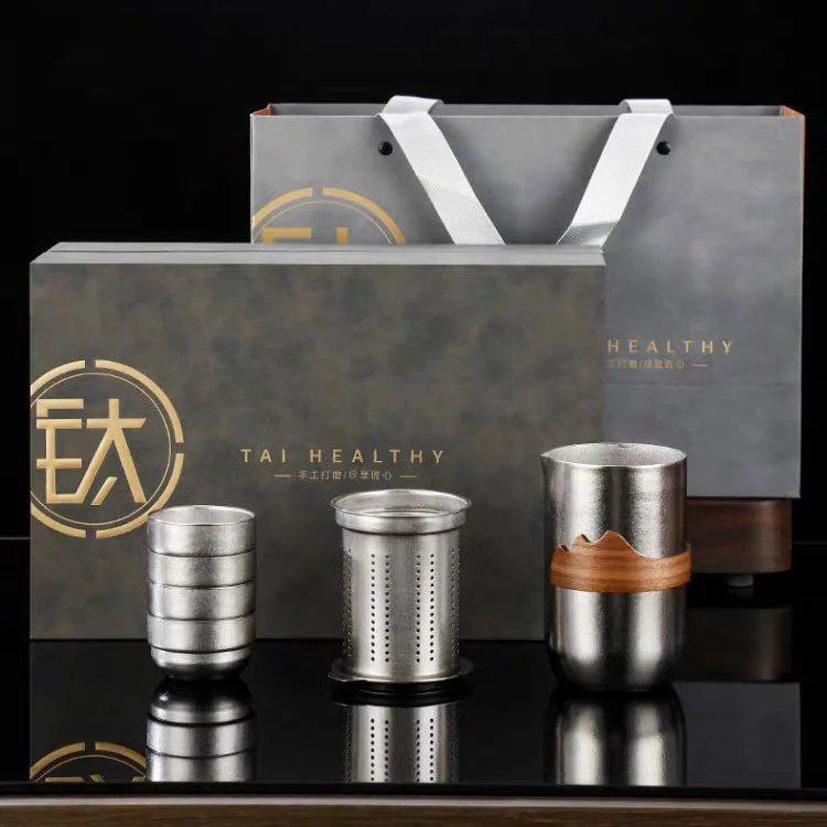 Ini adalah set teh untuk luar, ia diperbuat daripada titanium, dan pembungkusan dengan kotak hadiah. Empat cawan titanium kecil, satu cawan titaniunm besar, dan satu kes kulit. Empat cawan kecil boleh diletakkan dengan mudah di dalam cawan besar, dan kemudian cawan besar boleh dimasukkan ke dalam kantung. Satu poket sudah cukup untuk memegang semua alat. Biarkan anda menikmati alkohol yang kuat di luar rumah dengan rakan -rakan anda dengan cara yang santai.