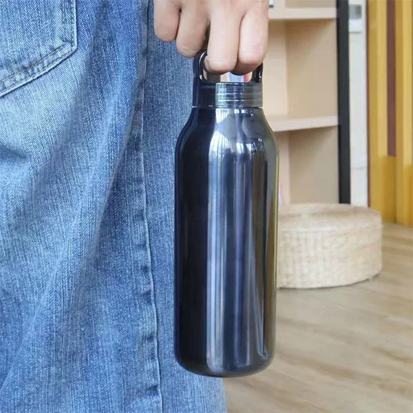 Bahan botol air hrdration adalah gred makanan 304 keluli tahan karat, memastikan bahawa bahagian-bahagian yang bersentuhan dengan air adalah selamat dan bersih, melindungi kesihatan pengguna. Reka bentuk tudung dilengkapi dengan cincin pemegang, membolehkan satu jari mudah mengangkatnya.
