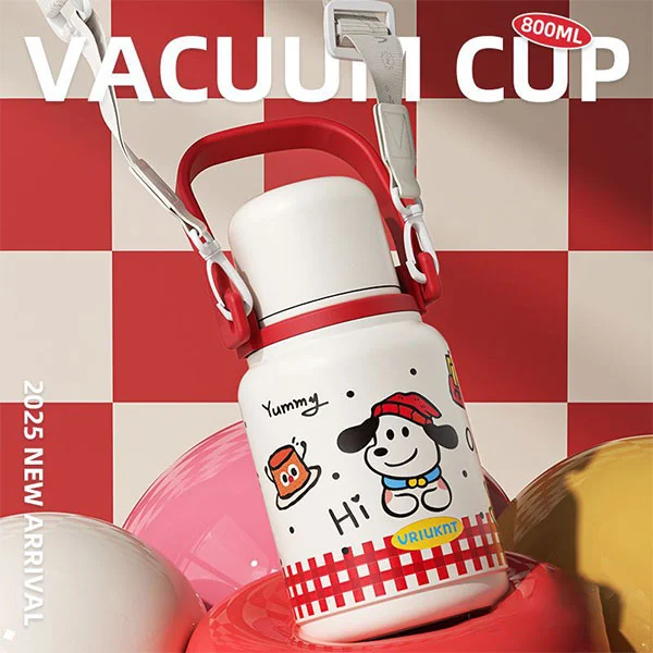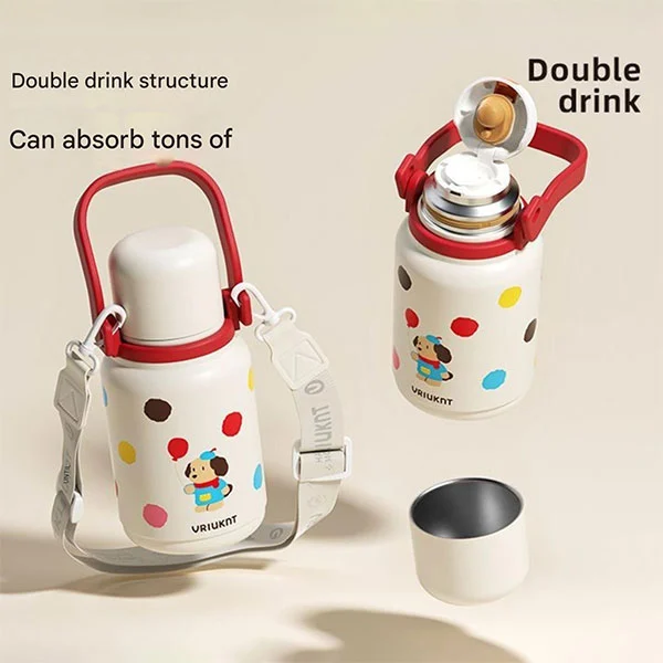 Kelalang vakum bertebat boleh digunakan sebagai botol air yang mesti ada untuk kanak-kanak pergi ke sekolah atau melancong, yang sangat sesuai untuk kanak-kanak kerana tangan mereka kecil dan tali boleh membebaskan tangan mereka.