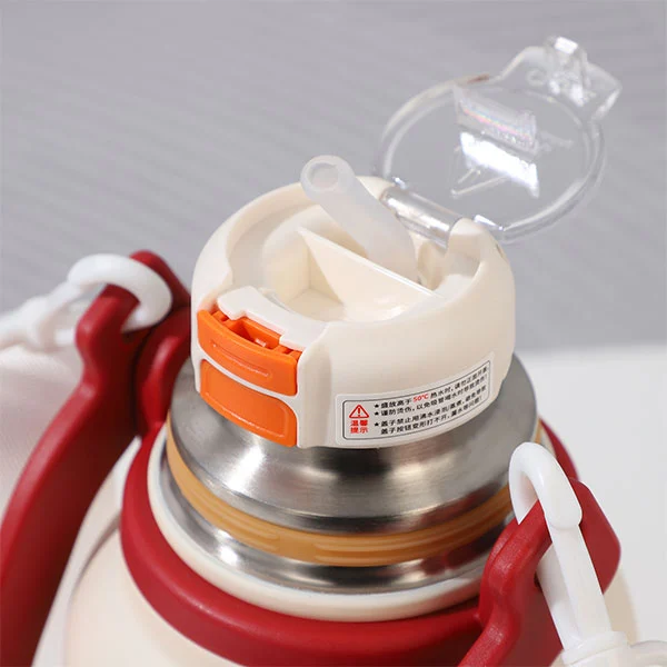 Tudung cawan tiga peringkat dilengkapi dengan penyedut minuman yang boleh diguna semula untuk mudah diteguk, dan reka bentuk bermulut lebar untuk mudah diminum. Kami sangat suka menggunakan penyedut minuman semasa memandu; Termos ini membolehkan anda dengan mudah menumpukan pandangan anda ke jalan raya sambil menikmati minuman anda. Perlu diingatkan bahawa peranti berputar pada penutup cawan tidak dimeteraikan, dan penutup cawan ini bukan kalis kebocoran sepenuhnya.